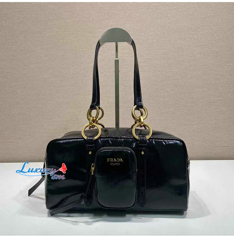 [스페셜오더]PRADA-1BB138 프라다 블랙 댕글 가죽 미디엄 탑 핸들 백