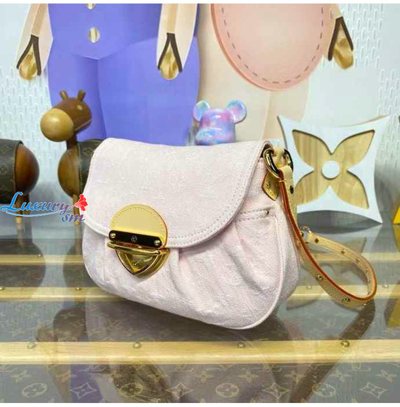 노그램 데님 패턴을 담아 선보이는 선셋 핸드백.