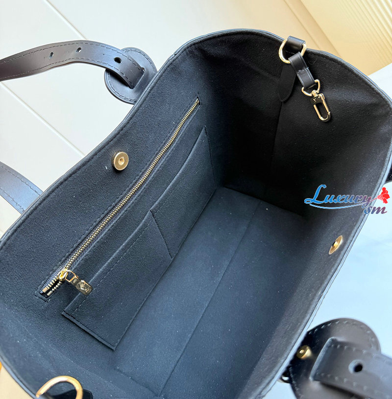 장식적인 LV 패드락과 네임 택을 포함한 시그니처 디테일이 특징.