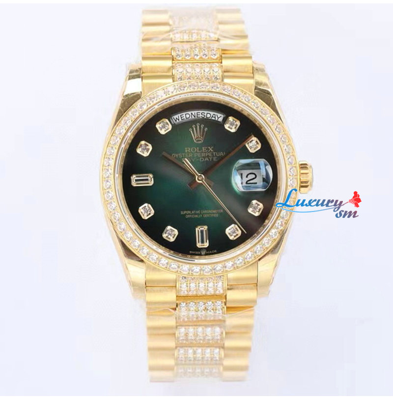 [스페셜오더][RA Factory]ROLEX-128348 롤렉스 데이-데이트 터콰이즈 옐로우 골드 다이아몬드 파베 다이얼 36mm