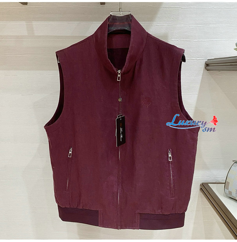 Loro Piana-03253 로로피아나 올드머니 스타일 LP 프리미엄 린넨 원단 조끼 버건디 남성용