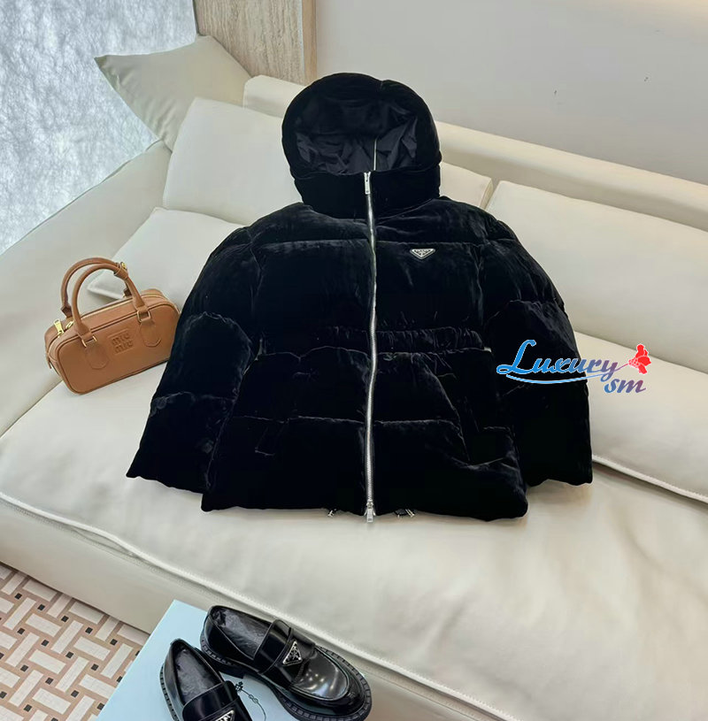 PRADA-1E1117707 프라다 삼각로고 벨벳 다운 패딩  여성용