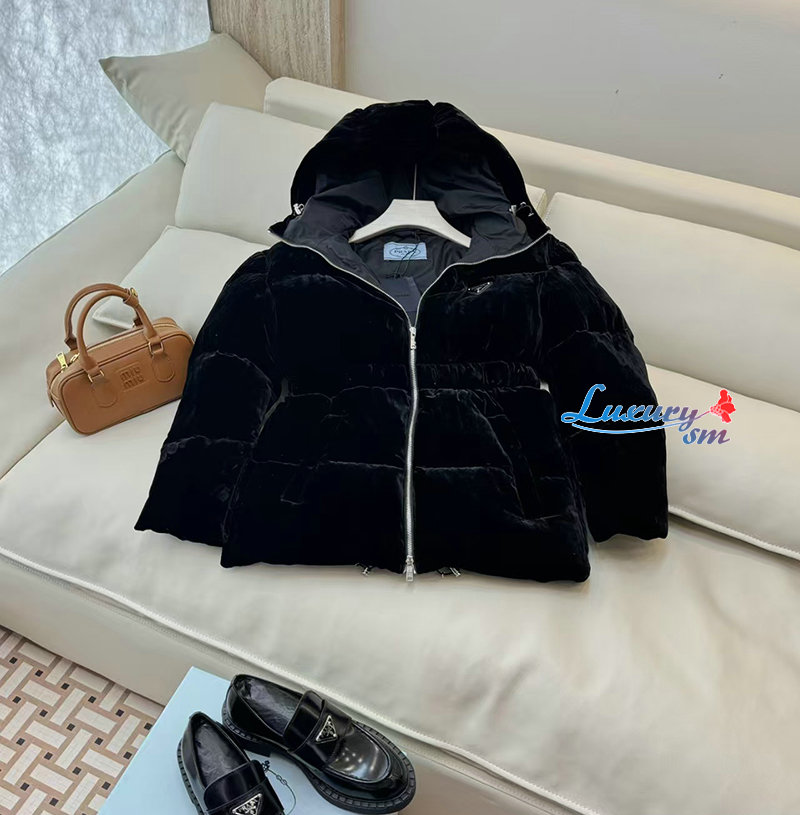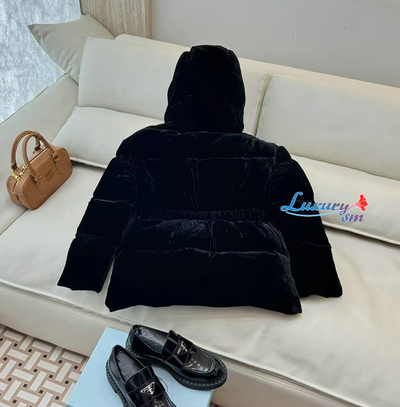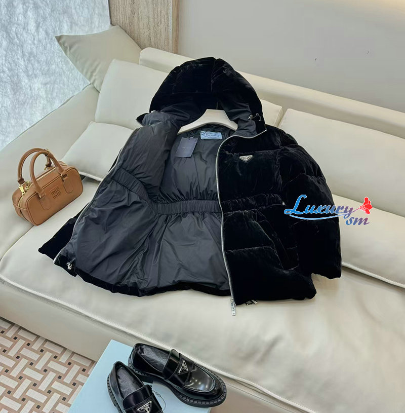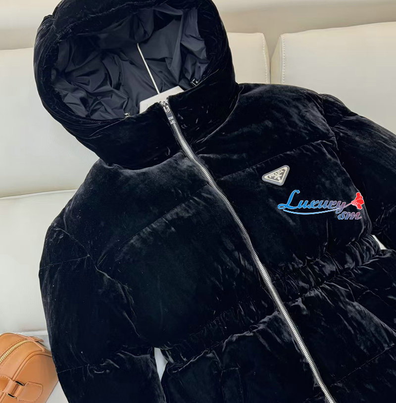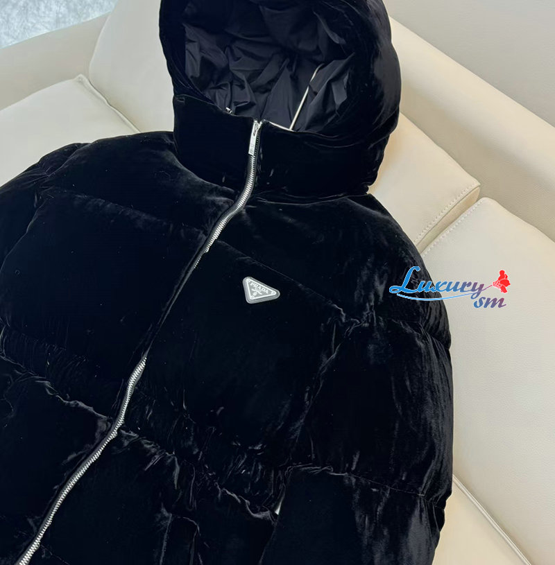 PRADA-1E1117707 프라다 삼각로고 벨벳 다운 패딩 여성용