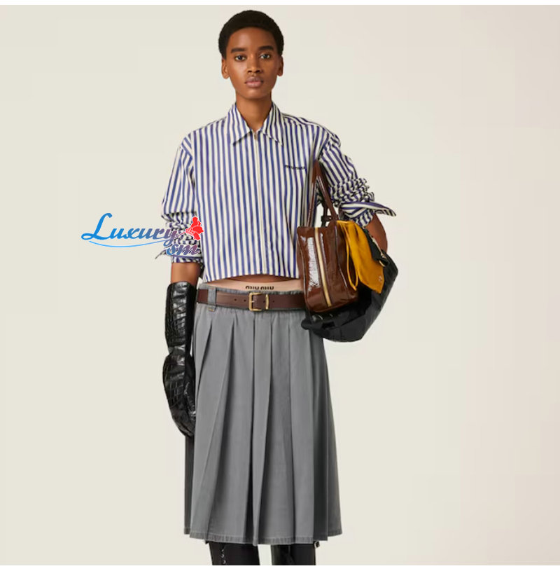 MIUMIU-MK1905 미우미우 블루 스트라이프 포플린 셔츠 여성용