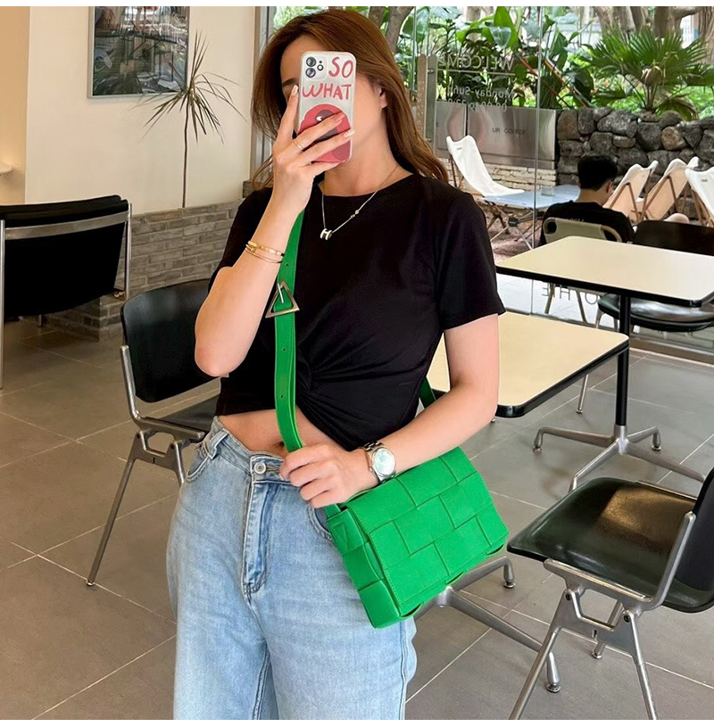 *가죽 소재를 인트레치오 위빙으로 완성한 미디엄 크로스바디 백