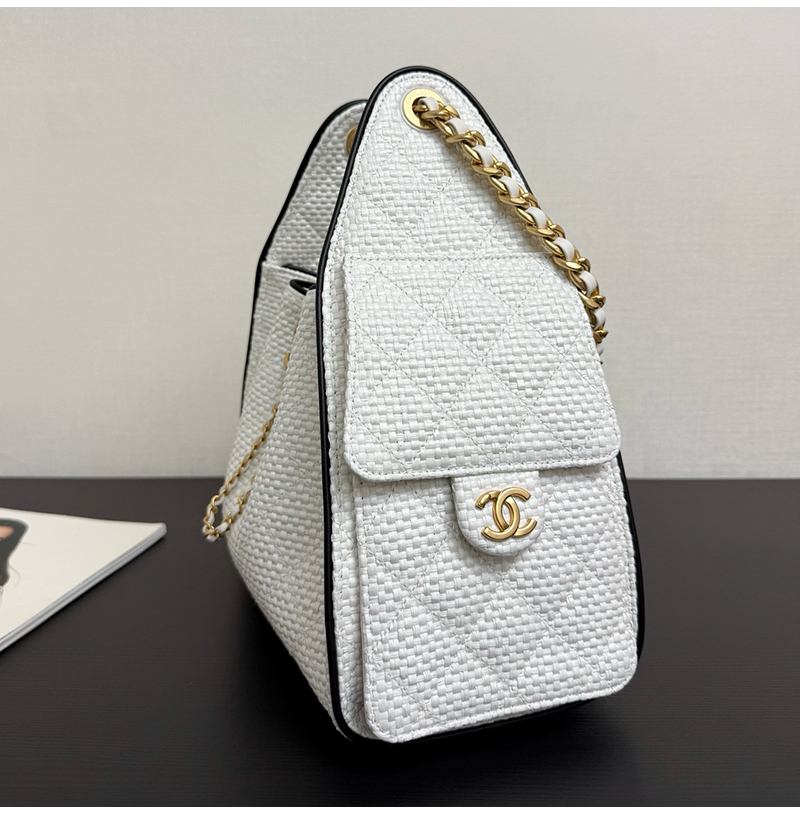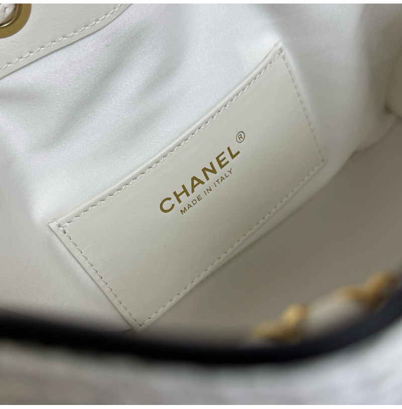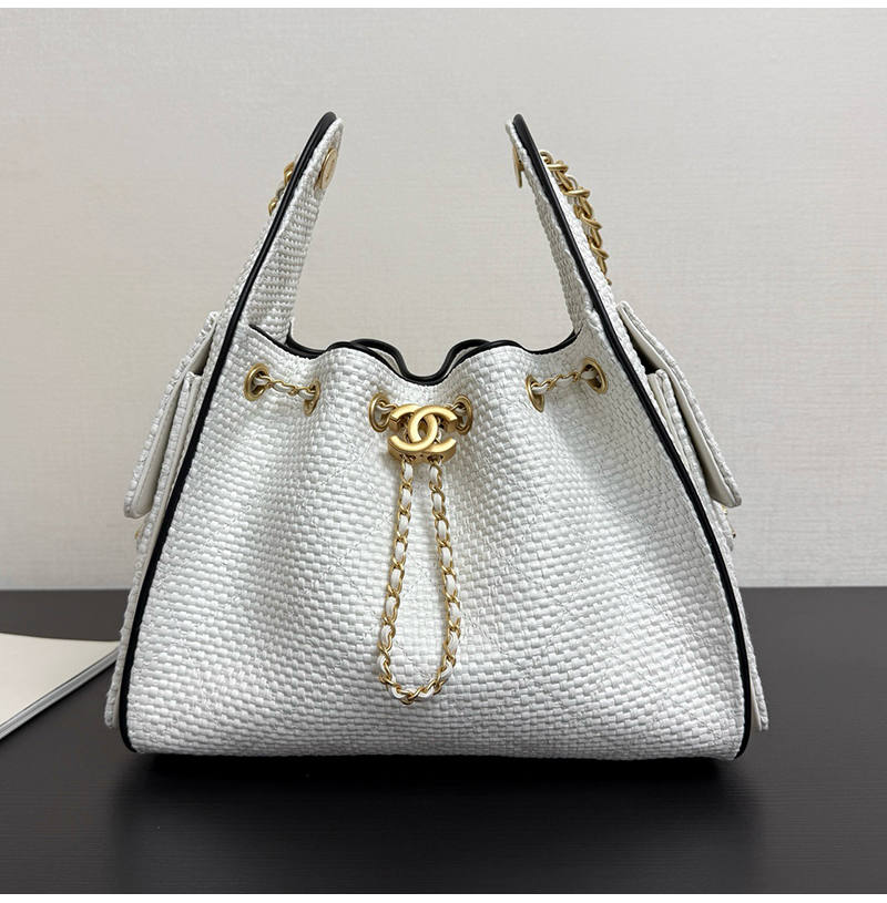 클래식한 버킷백 디자인, 퀼팅 패턴 ,드로우스트링, 더블 C 메탈 자물쇠가 돋보이는 감각적인 디자인! 베이지 컬러 브레 이드 소재는 가볍고 내구성이 좋으며, 블랙 포인트가 고급스 러움을 더해 데일리룩이나 캐주얼 자리 모두 잘 어울려요. 스몰 사이즈지만 수납력이 좋아 핸드폰, 화장품 등이 쏙 들어가고, 숄더 & 크로스 가능해 실용적이면서도 스타일리시! 최근 트렌디한 아이템으로 심플하고 우아한 스타일이 패션계 에서도 인기가 높아 다양한 코디에 쉽게 매치할 수 있어 눈길을 사로잡는 필수템입니다. 구매 만족도1위, 재구매율1위, 홍콩명품by럭셔리즘