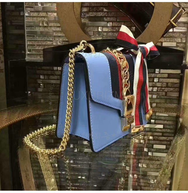 [스페셜오더]GUCCI-431666 4367 구찌 Sylvie 가죽 나일론 web 리본 장식 미니 체인백 라이트 블루