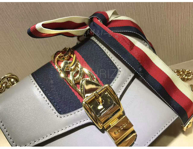 [스페셜오더]GUCCI-431666 1761 구찌 Sylvie 가죽 나일론 web 리본 장식 미니 체인백 그레이