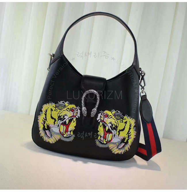 [스페셜오더]GUCCI-446687 8756 구찌 디오니서스 타이거 자수 미디움 레더 호보 숄더백 블랙