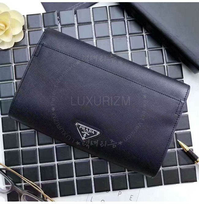 [스페셜오더]PRADA-2VF075 프라다 사피아노 가죽 폴리시드 스틸 클러치 블랙