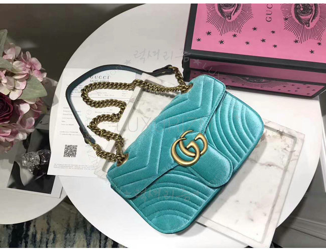 [스페셜오더]GUCCI-446744 4462 구찌 GG Marmont 마틀라세 미니 벨벳 숄더백 페트롤 블루