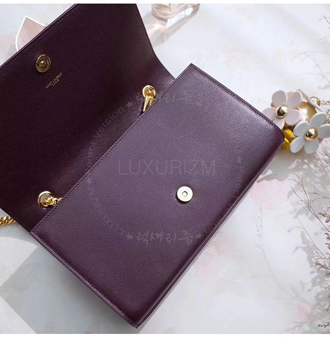 [스페셜오더]SAINT LAURENT-364021 생로랑 다크 레드 그랑 드 뿌드르 텍스처드 가죽 소재의 클래식 미디엄 케이트 금장 사첼 백