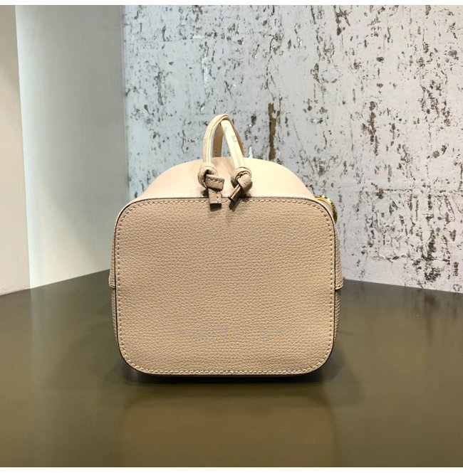 스몰 사이즈 버킷 백 드로우스트링 잠금장치와 펜디 로고 형태의 메탈장식.