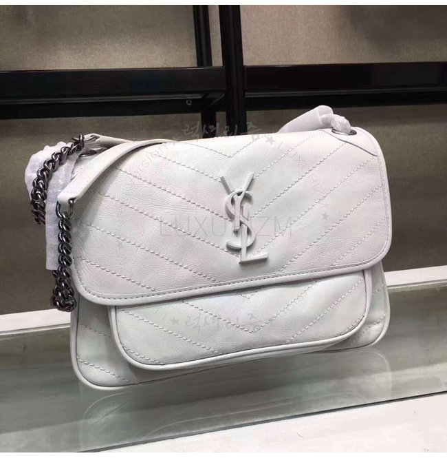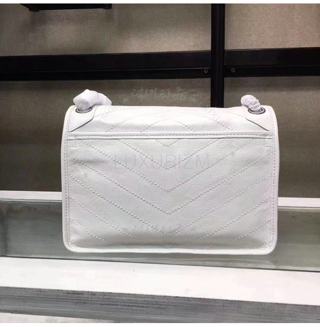 [스페셜오더]SAINT LAURENT-498894 생 로랑 송아지 가죽 크링클드 퀼티드 펄 화이트 미디움 니키 체인 백