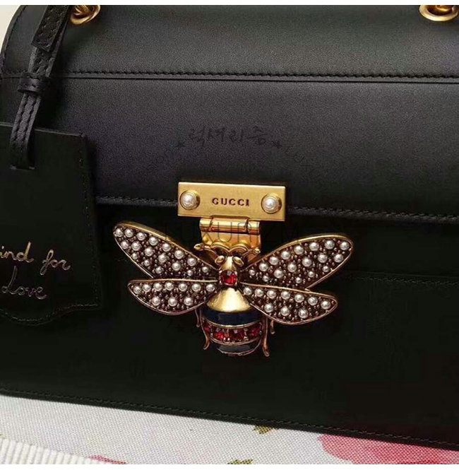 [스페셜오더]GUCCI-476541 8062 구찌 블랙 가죽 Queen Margaret 스몰 탑 핸들 백