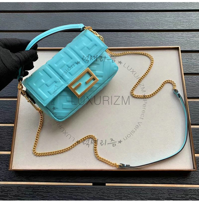 [스페셜오더]FENDI-8BS017 펜디 라이트 블루 FF 모티프 양가죽 미니 바게트백