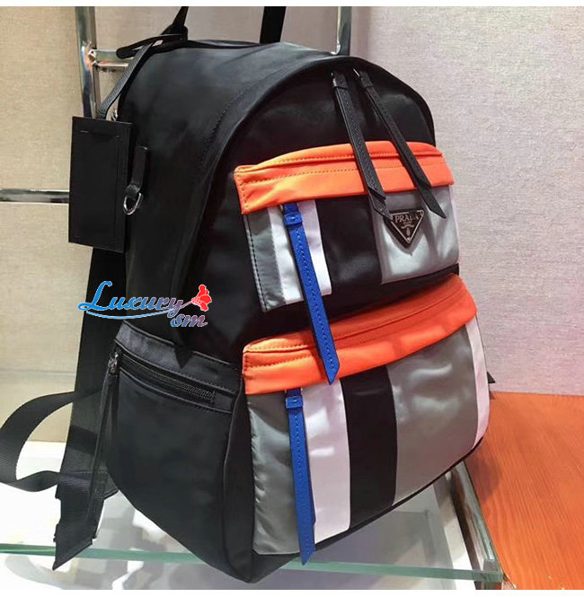 [스페셜오더]PRADA-2VZ025 프라다 오렌지/블랙/그레이 프린트 테크니컬 페브릭 백팩