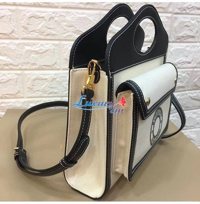 [스페셜오더]BURBERRY-80280581 버버리 탠/화이트 미니 로고 그래픽 캔버스 레더 포켓 백 가격 : 340,000원