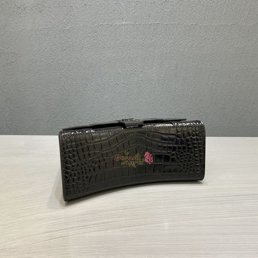 [스페셜오더]BALENCIAGA-593546 발렌시아가 블랙 크로커다일 아워글래스 스몰 탑 핸들백