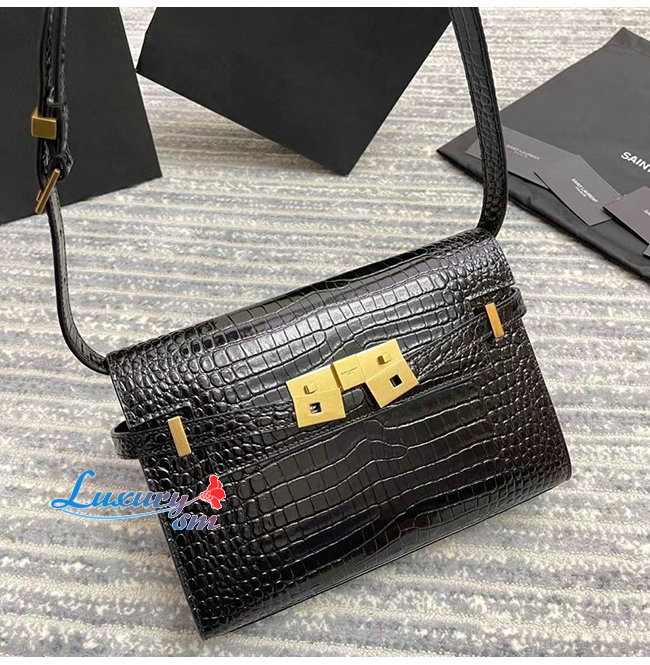 [스페셜오더]SAINT LAURENT-675626 생 로랑 블랙 크로커다일 엠보스드 가죽 MANHATTAN 스몰 숄더백