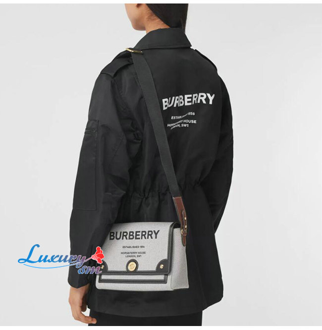 [스페셜오더]BURBERRY-80557481 버버리 블랙 호스페리 모티프 캔버스 노트 크로스바디 백 가격 : 340,000원