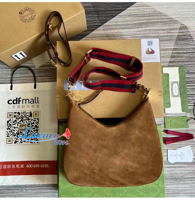 [스페셜오더]GUCCI-702823 2664 구찌 브라운 스웨이드 구찌 아따슈 라지 숄더백