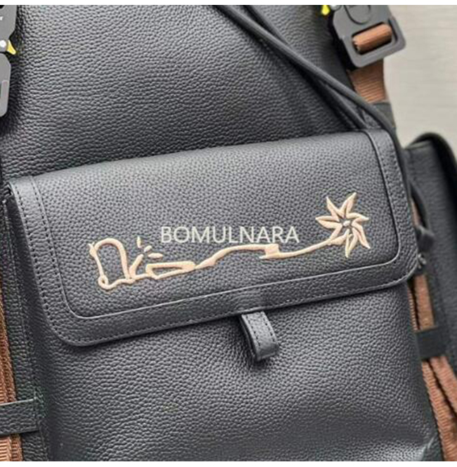 제품소재 : 블랙 카프스킨 가죽 / 시그니처 자수 트리밍