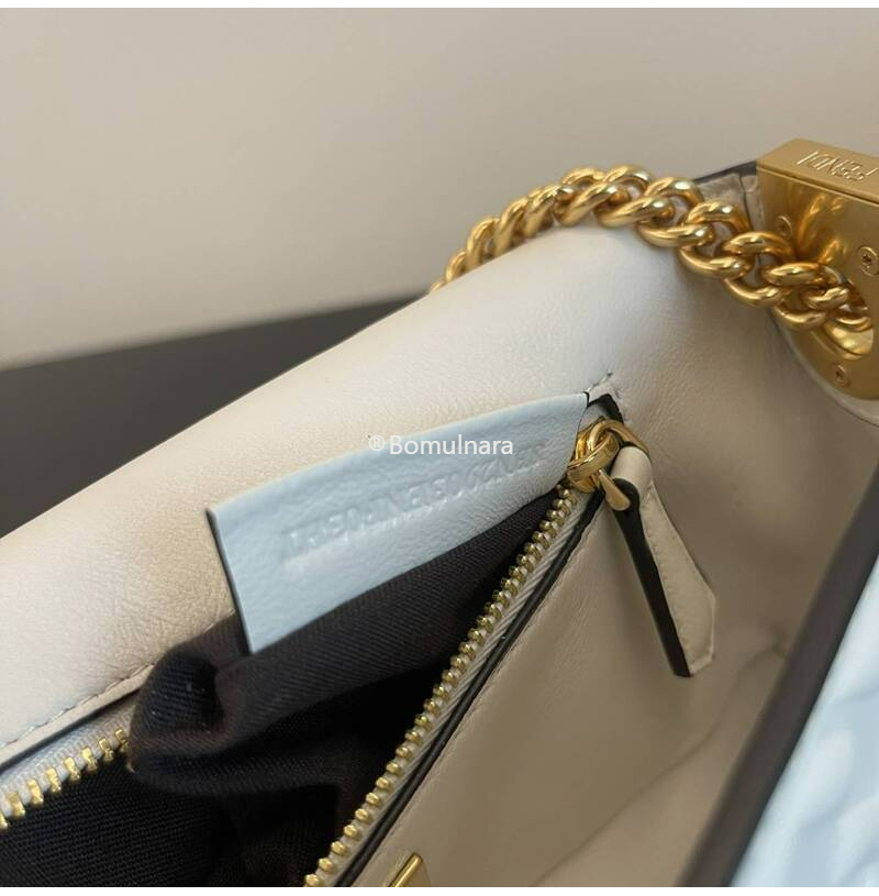 FENDI-8BR793 펜디 화이트 FF 미디 체인 바게트 백
