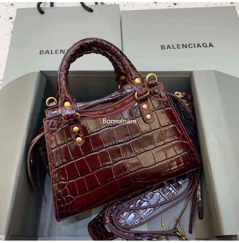 발렌시아가 버건디 크로커다일 엠보싱 네오 클래식