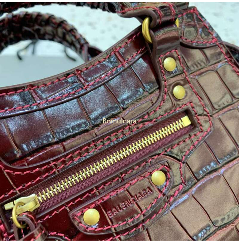 [스페셜오더]BALENCIAGA-638524 발렌시아가 버건디 크로커다일 엠보싱 네오 클래식 미니 탑 핸들 백