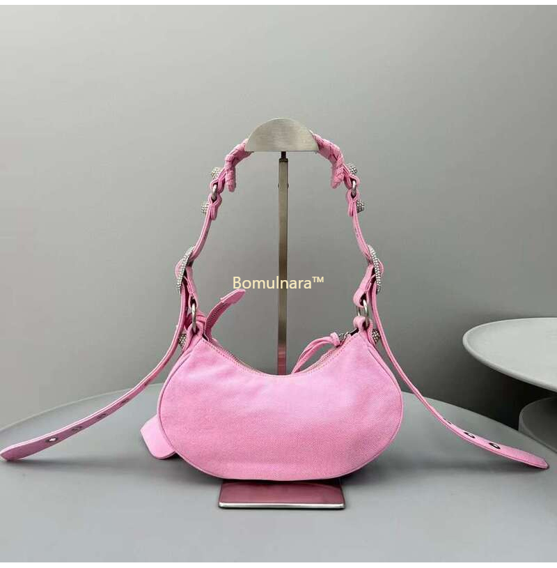 [스페셜오더]BALENCIAGA-671309 발렌시아가 핑크 데님 라인스톤 LE CAGOLE XS 숄더 백