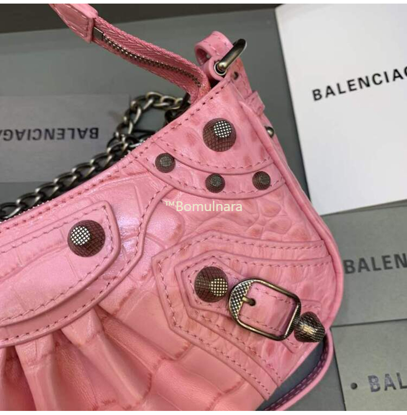[스페셜오더]BALENCIAGA-695814 발렌시아가 핑크 크로커다일 엠보싱 LE CAGOLE MINI 체인 숄더백