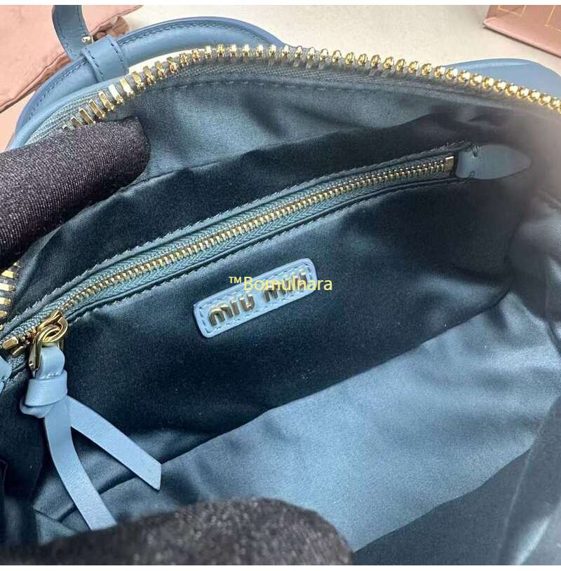 [스페셜오더]MIUMIU-5BB142 미우미우 마리나 블루 레터링 로고 스몰 탑 핸들 백