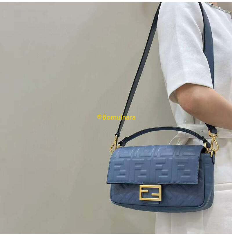 [스페셜오더]FENDI-8BR600 펜디 블루 FF 엠보싱 미디엄 바게트 백 27CM