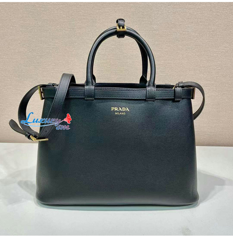 [스페셜오더]PRADA-1BA417 프라다 블랙 버클 미디엄 가죽 핸드백