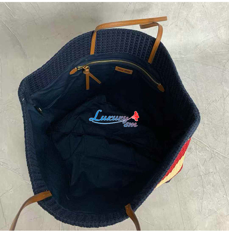 [스페셜오더]MIUMIU-5BG228 미우미우 네추럴/네이비 라피아 효과 우븐 토트 백