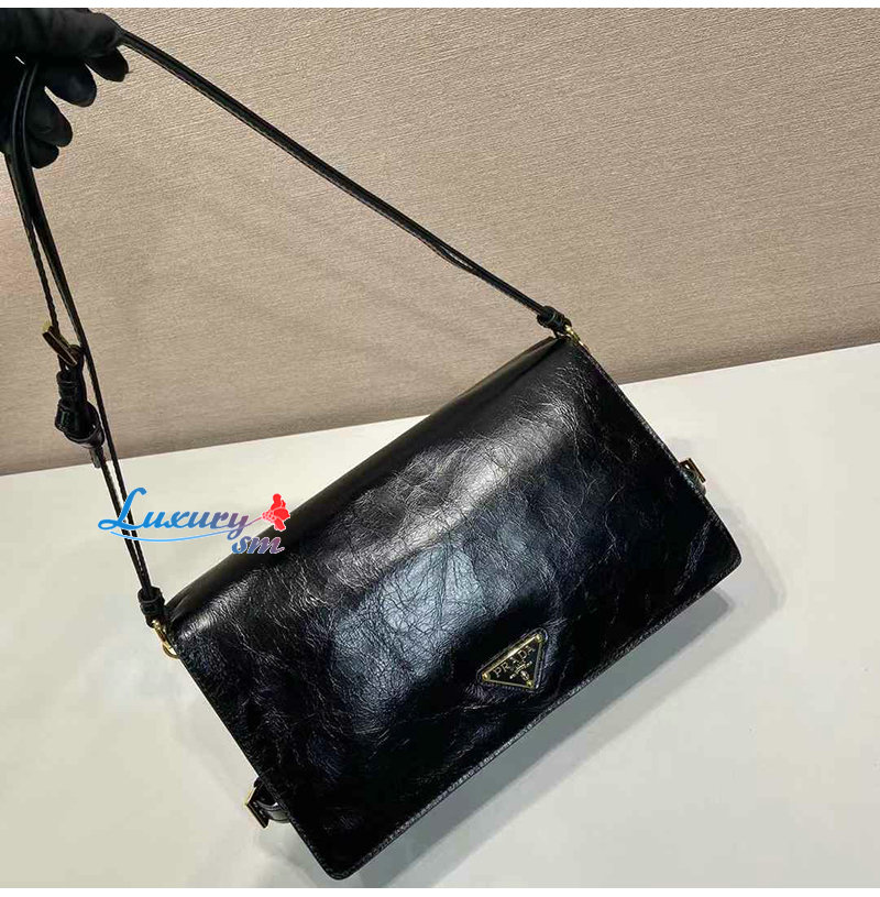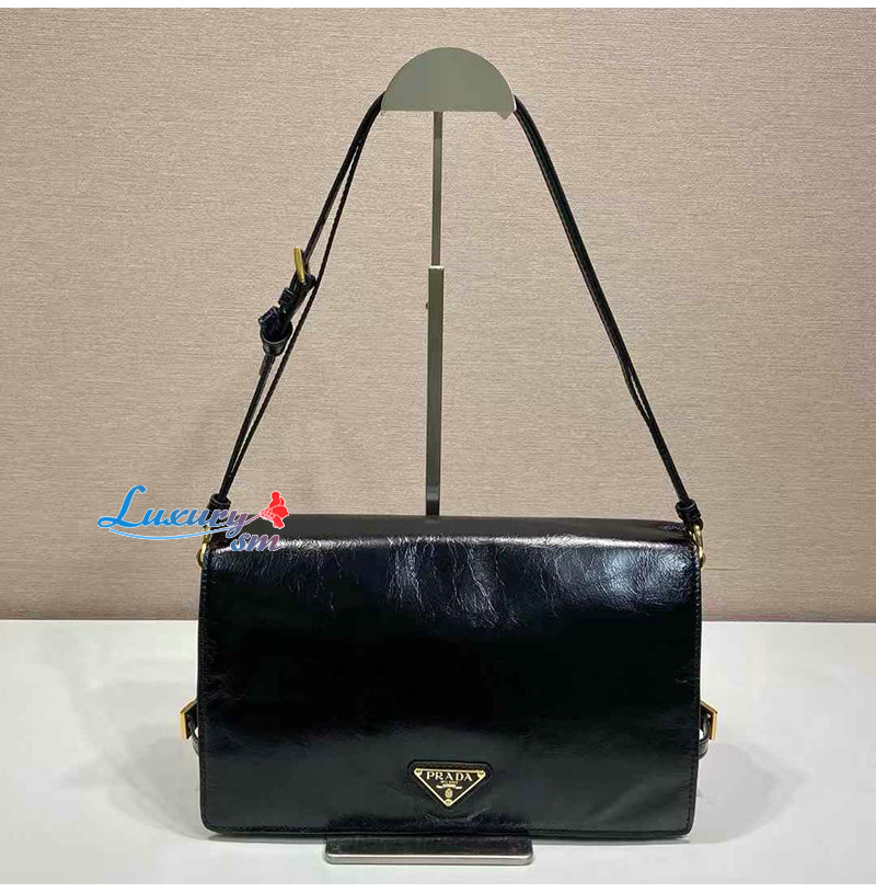 PRADA-1BD385 프라다 블랙 미디엄 가죽 숄더백