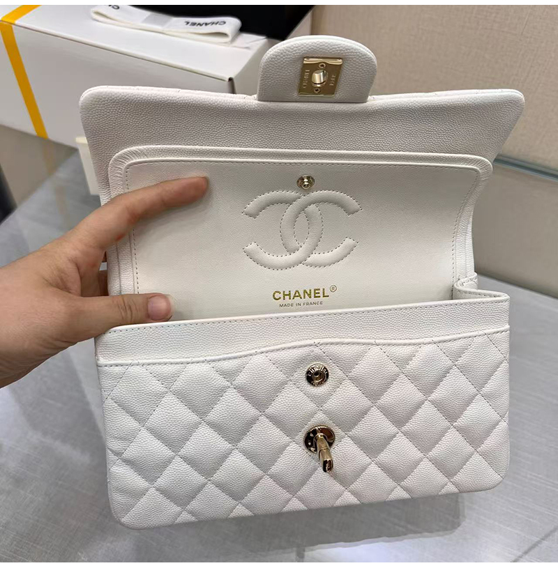 CHANEL-08151 샤넬 화이트 캐비어 가죽 2.55