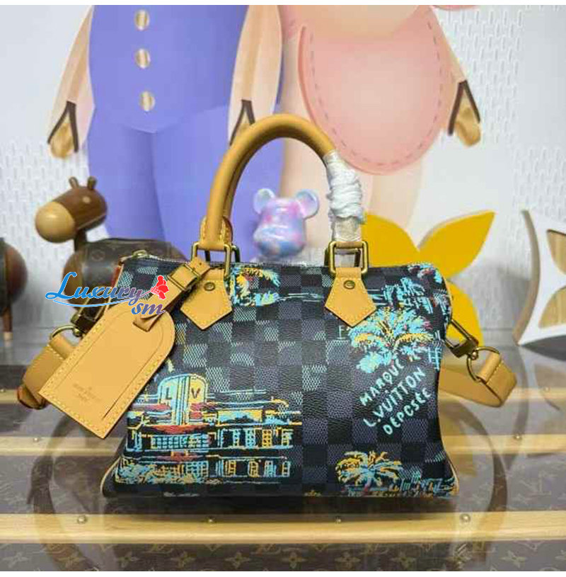 [스페셜오더]LOUIS VUITTON-N00225 루이비통 마리나 블루 다미에 팜 트리 스피디 반둘리에 25