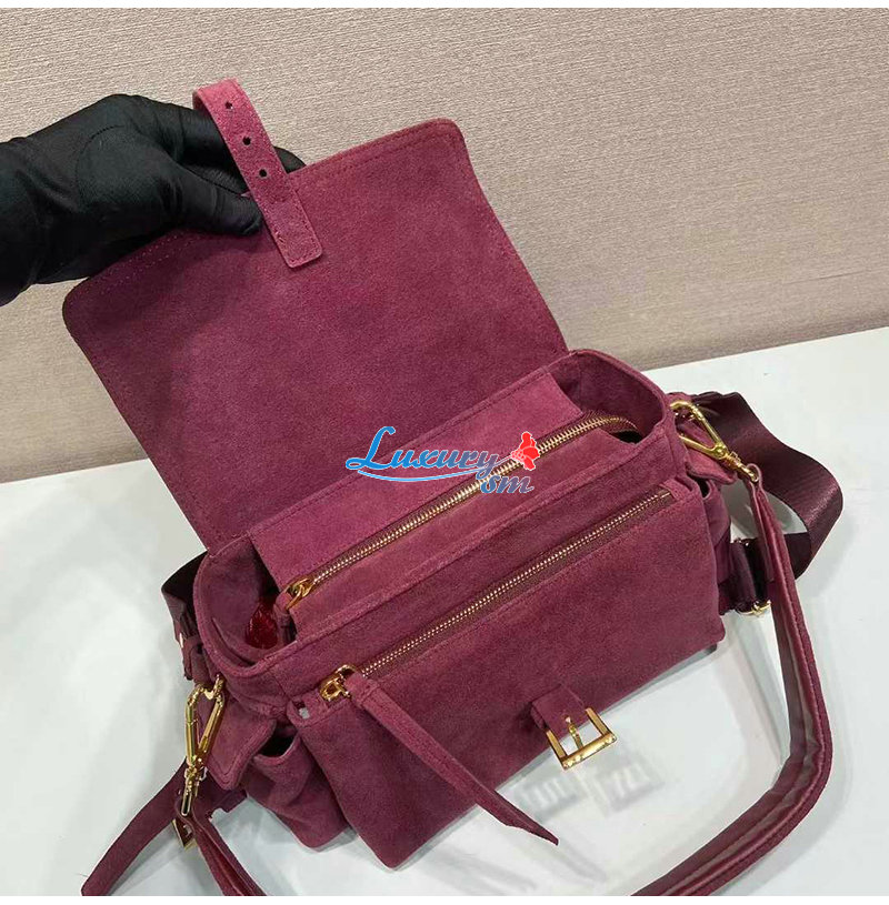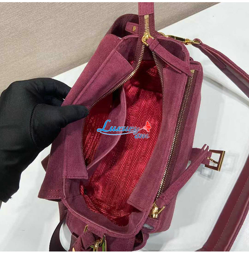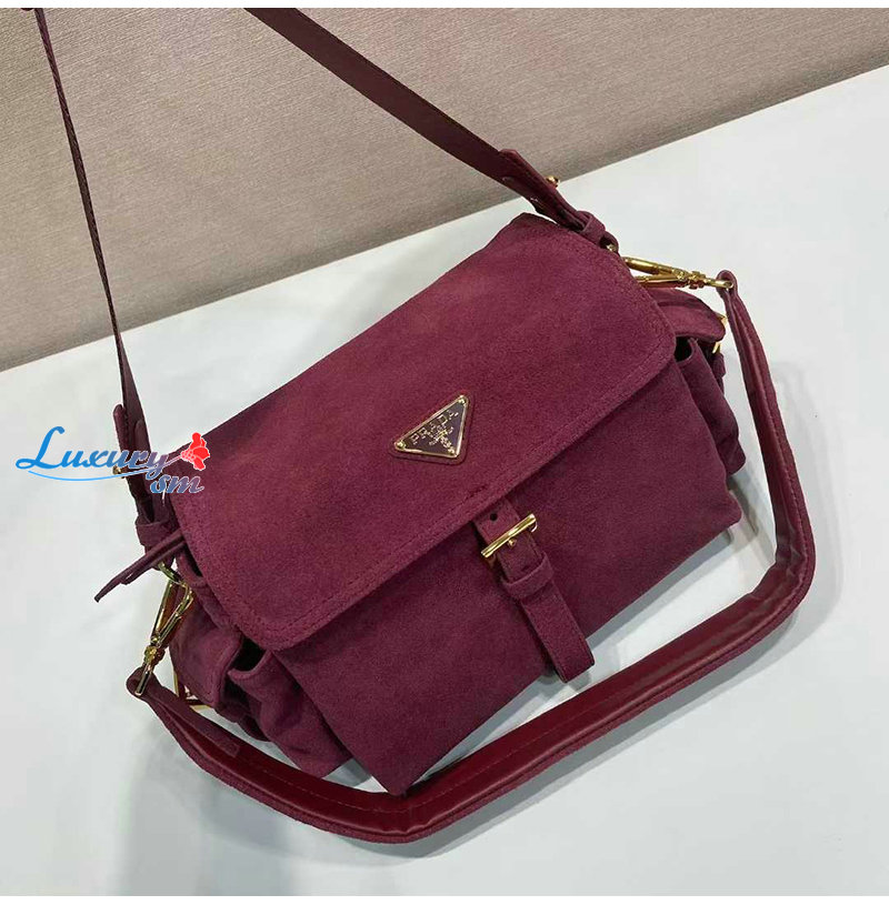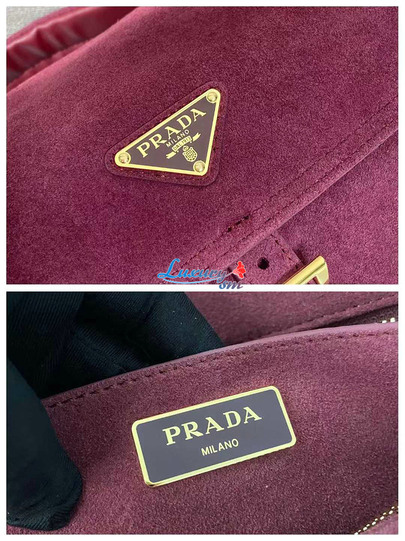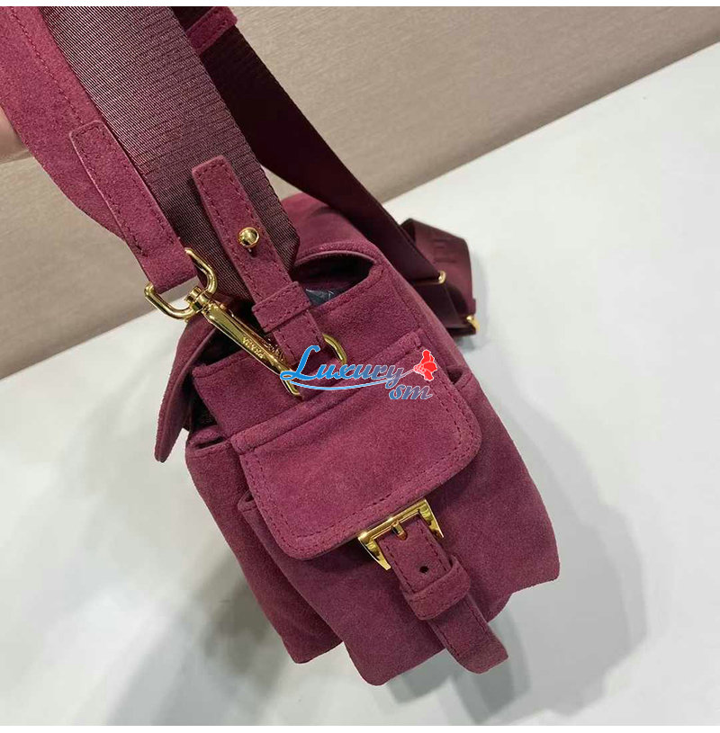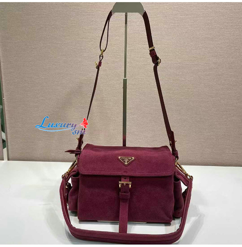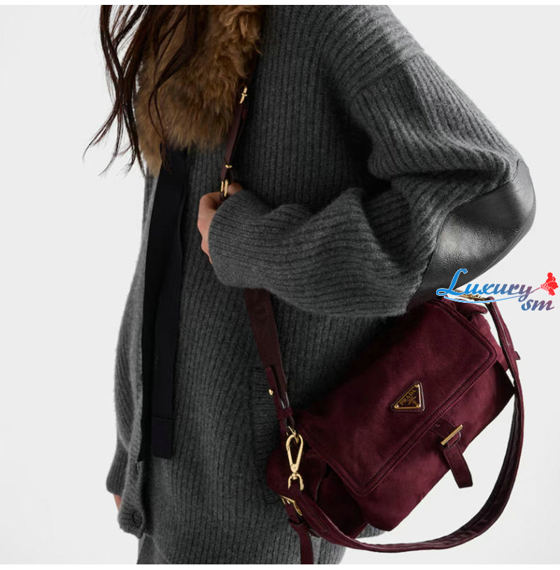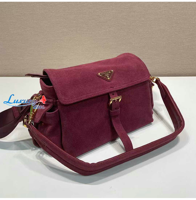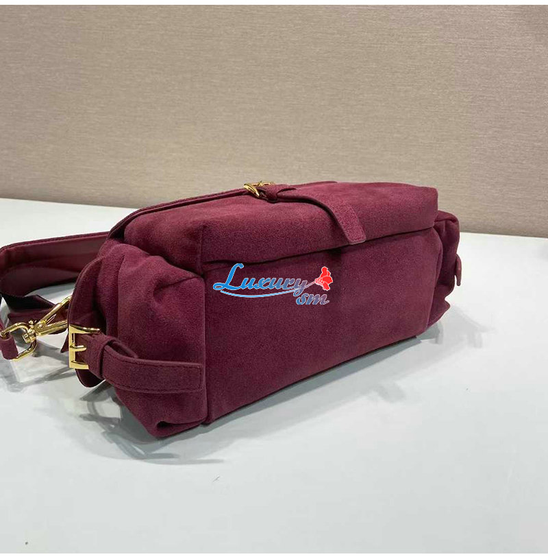 [스페셜오더]PRADA-1BD394 프라다 버건디 익스플로어 미디엄 스웨이드 숄더 백