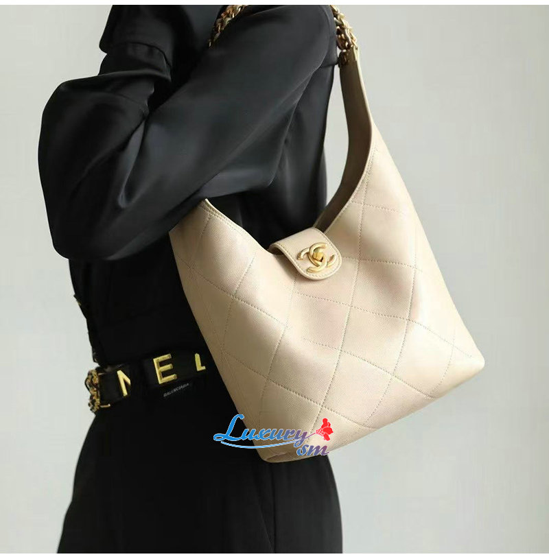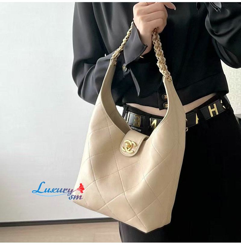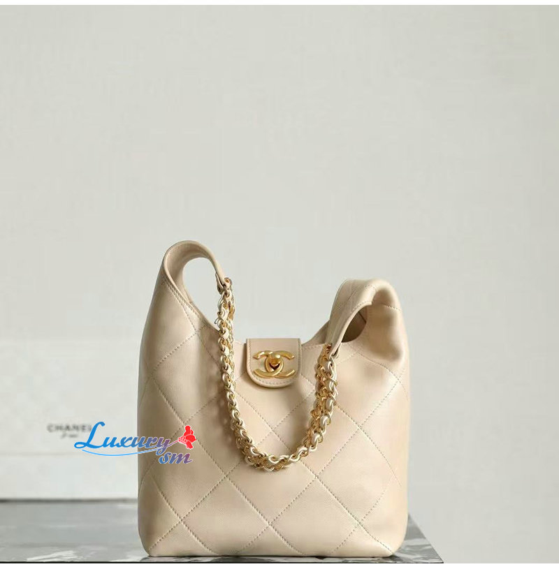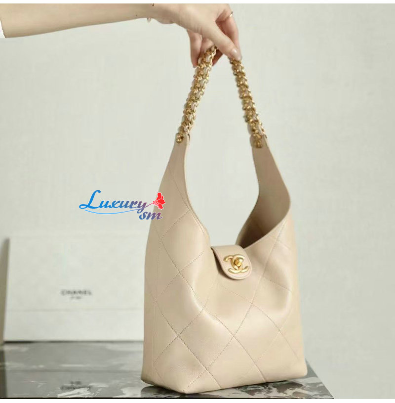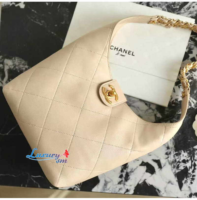 CHANEL-C041 샤넬 베이지 카프스킨 호보 백