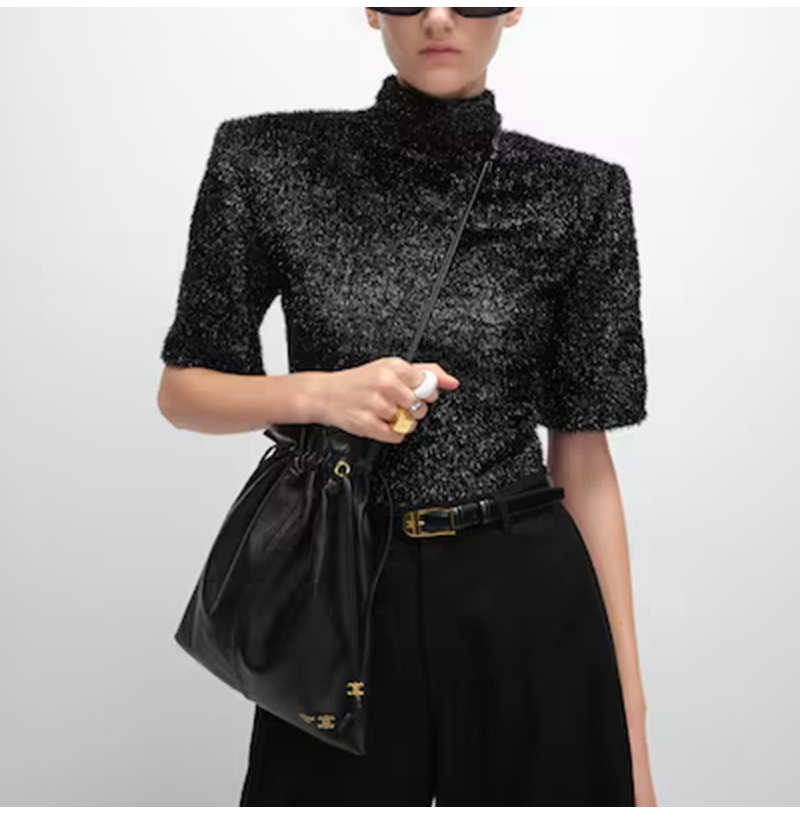 높은 식별도를 자랑합니다. 드로스트링 버킷백 디자인으로