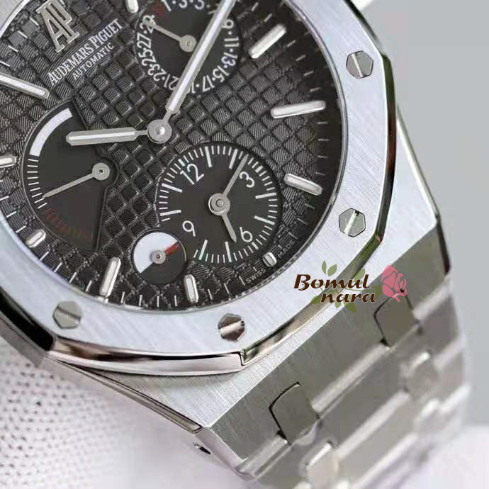 [스페셜오더]Audemars Piguet-오데마피게 로얄 오크 듀얼타임 파워리저브 스틸 블랙 41mm