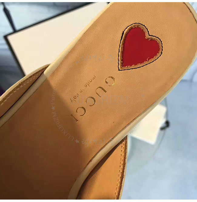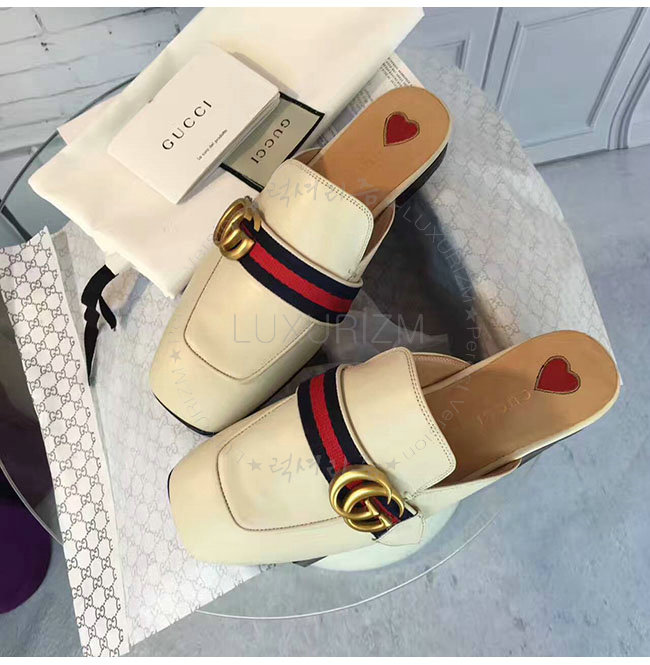 GUCCI-423697 9061 구찌 가죽 화이트 리더 슬리퍼 여성용