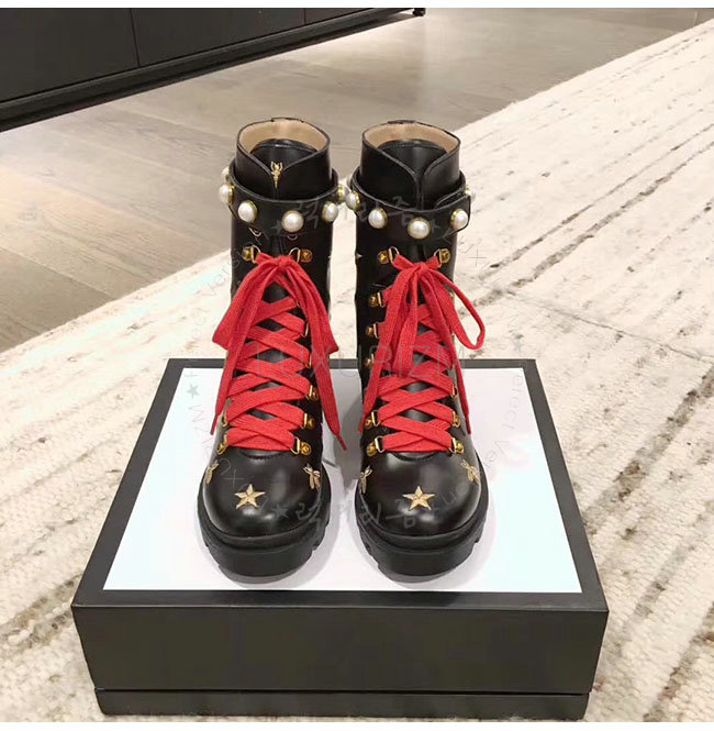 [스페셜오더]GUCCI-498695 1000 구찌 블랙 카프스킨 자수 앵클 부츠 여성용