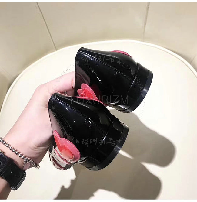 PRADA-2P254B 프라다 블랙 페이턴트 가죽 하트 아플리케 플랫 여성용