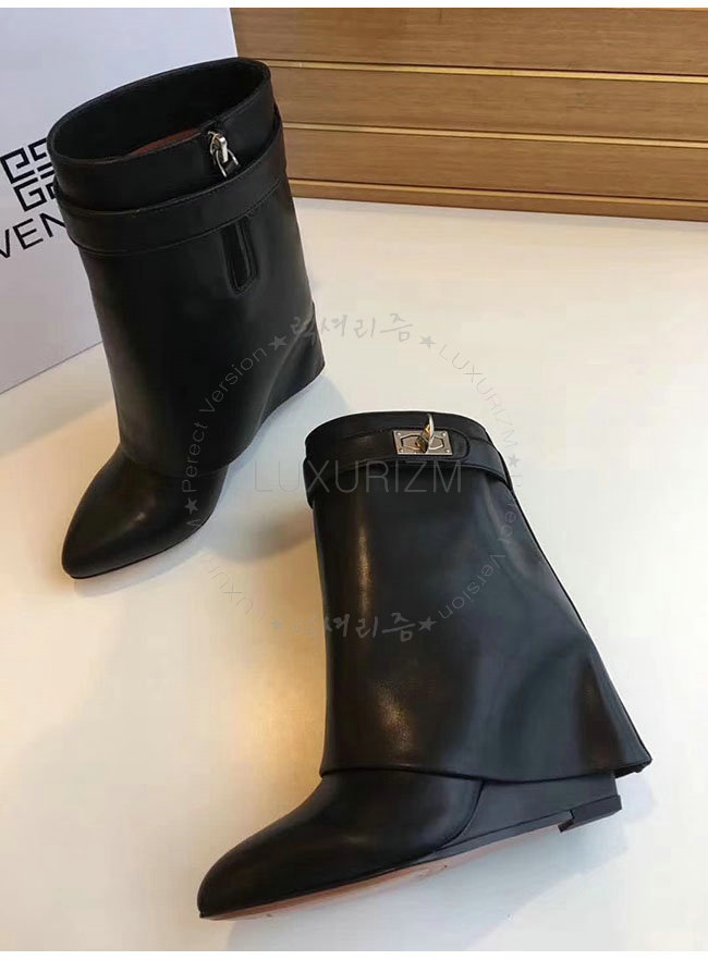 [스페셜오더]GIVENCHY-BE0890 지방시 블랙 송아지가죽 샤크 록 앵클 부츠 여성용