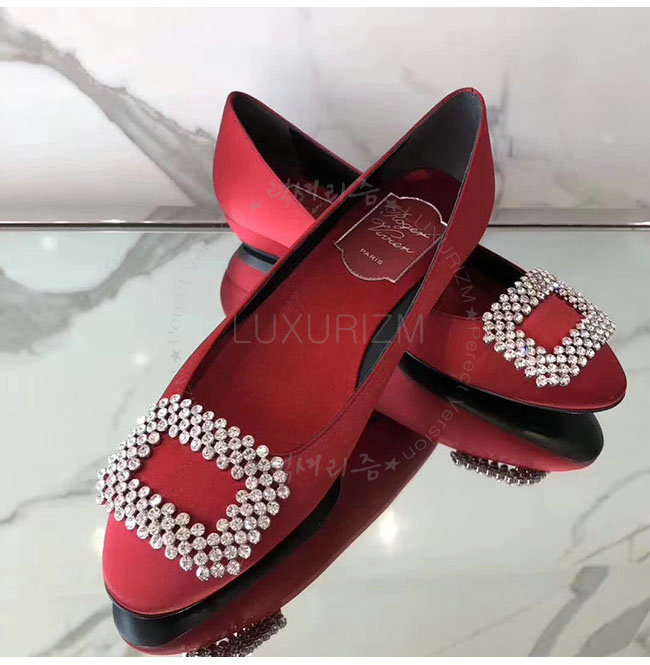 ROGER VIVIER-47821050 로저비비에 레드 실크 새틴 버티고 다이아뎀 발레리나 여성용