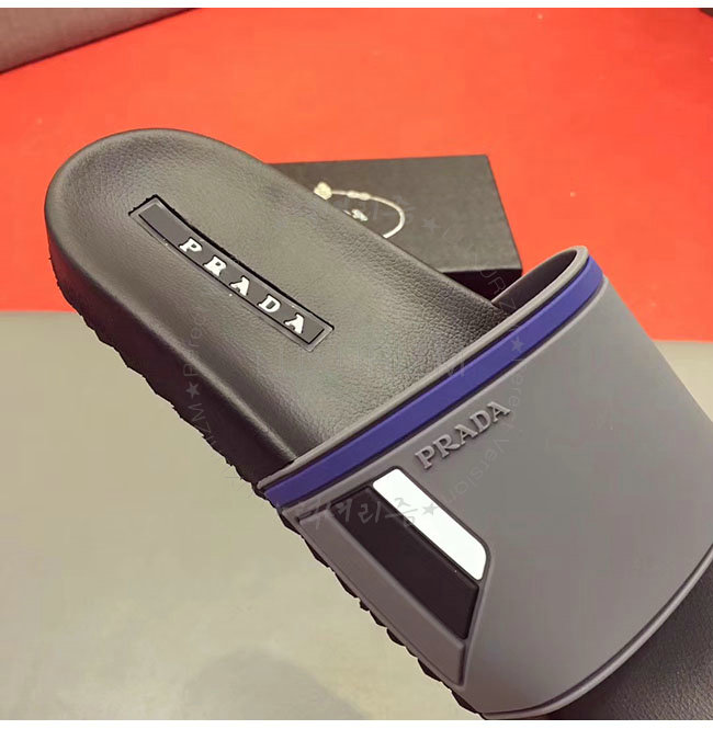 PRADA-4X3102 프라다 그레이 고무 슬라이드 슬리퍼 남성용