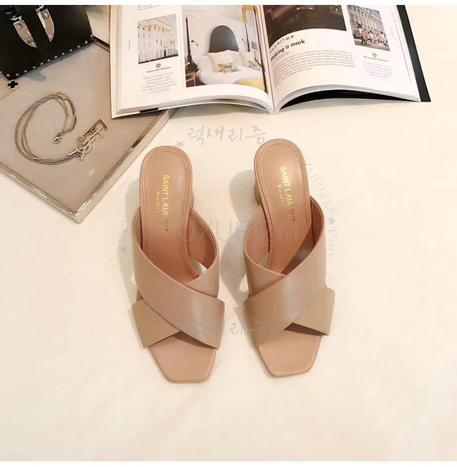 SAINT LAURENT-509357 생로랑 베이지 가죽 루루 라이드 샌들 펌프스 여성용